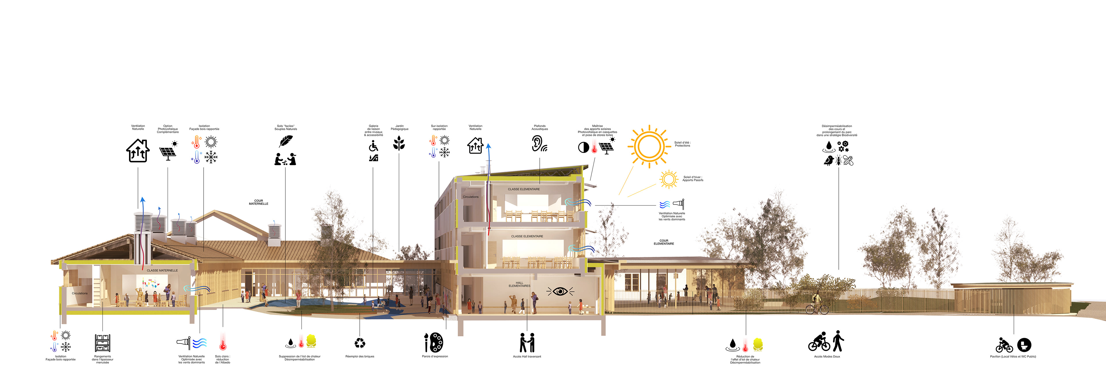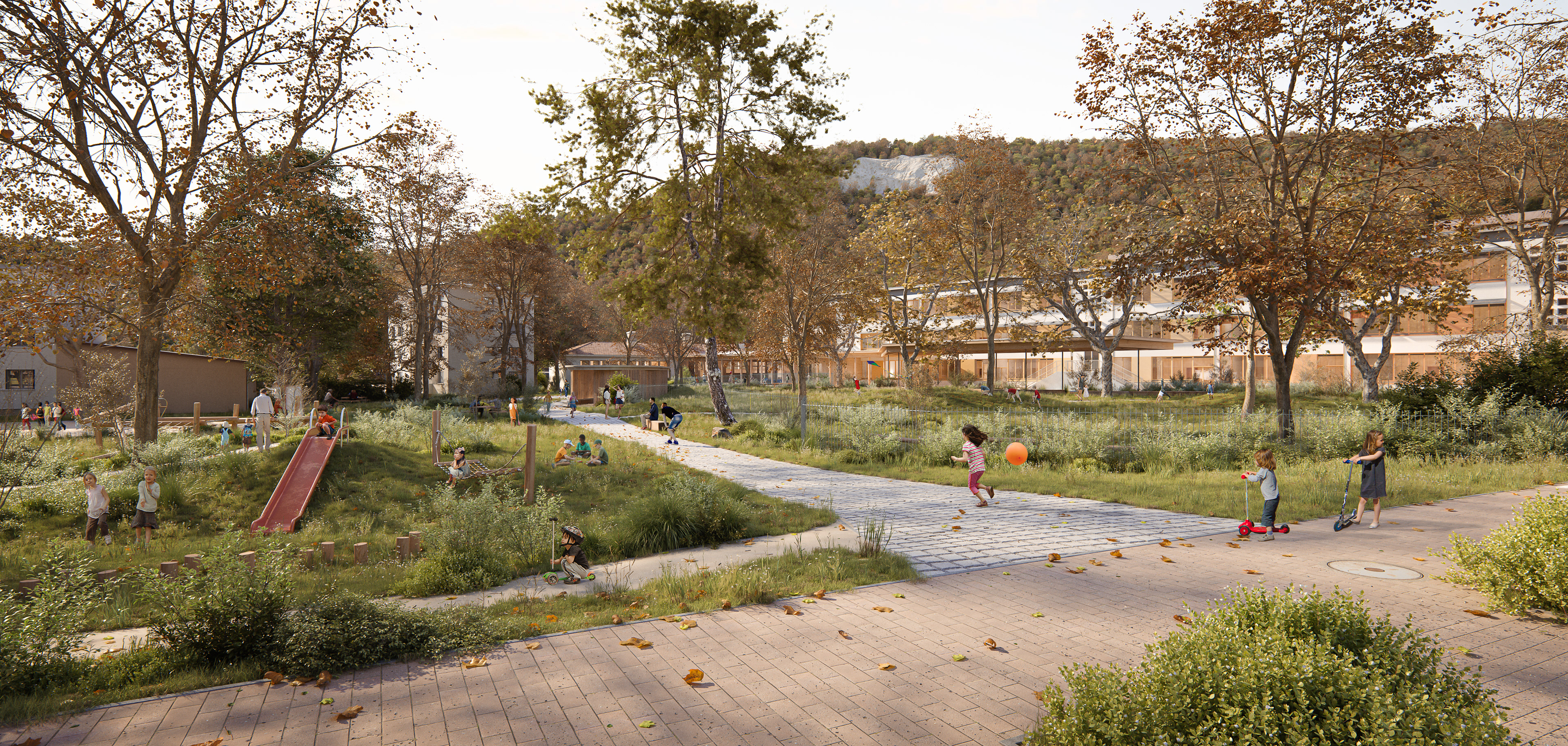 Programme / Réhabilitation du Groupe Scolaire Mi-Plaine à Meylan - Création de cours parc